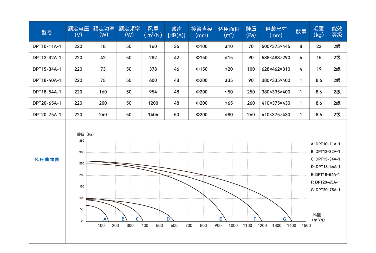 风量:160-1404m³/h