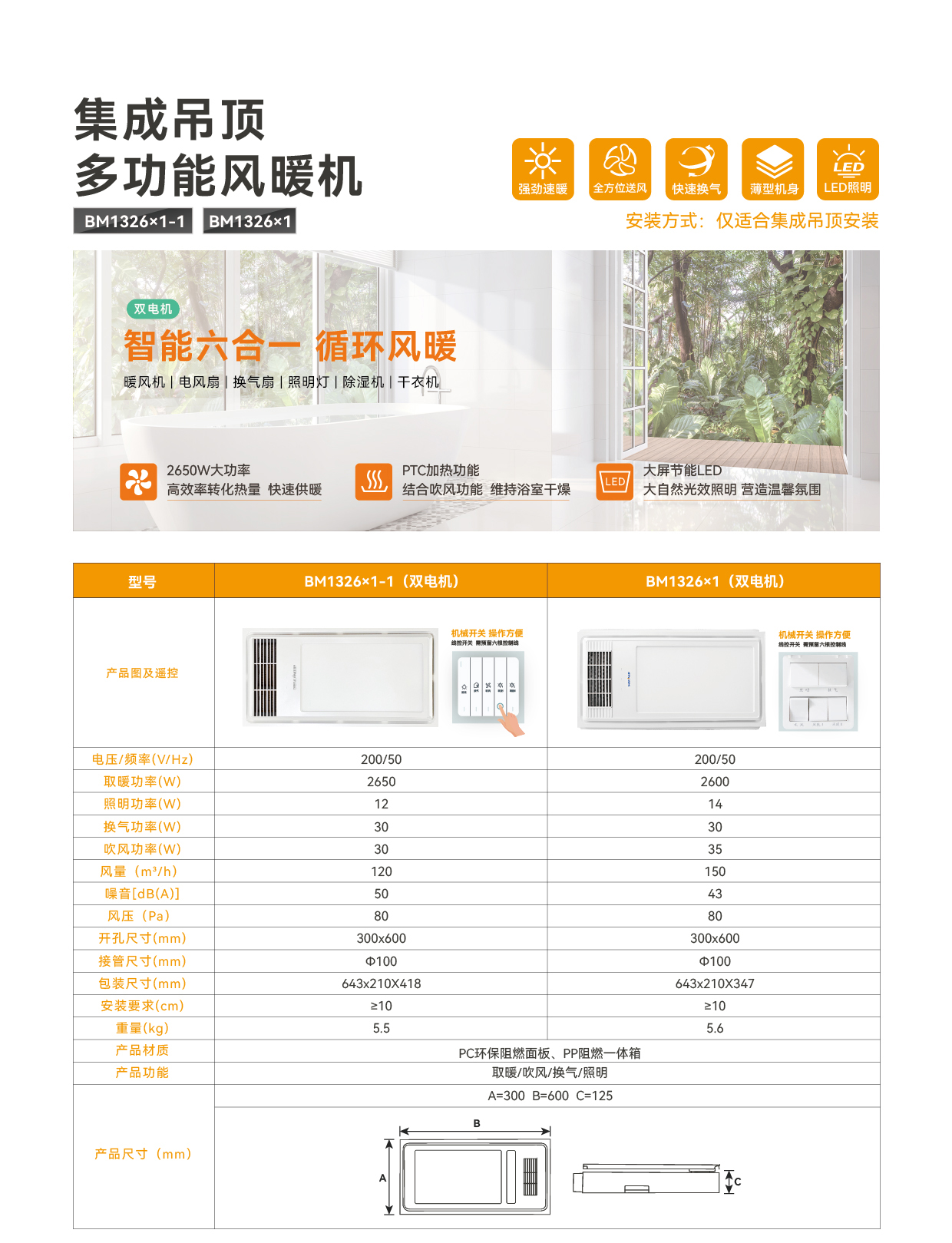 集成吊顶多功能风暖机BM1326x1-1